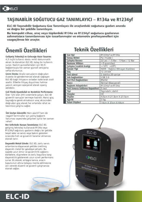 ELC-ID Taşınabilir Soğutucu Gaz Tanımlayıcı ile araçlardaki soğutucu gazları anında